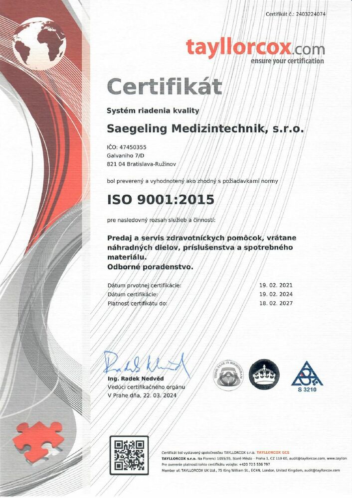 V roku 2016 získala spoločnosť certifikáciu podľa DIN EN ISO 9001 a DIN EN 13485 pre systém riadenie kvality ako i pre oblasť riadenia kvality – zdravotnícke pomôcky. Odvtedy je úspešne recertifikovaná.